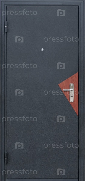 Модель входной металлической двери, изолированная на белом фоне