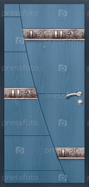 Модель входной металлической двери, изолированная на белом фоне