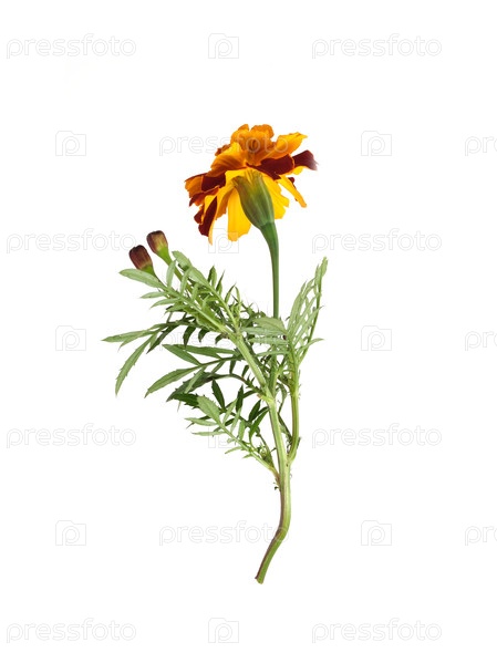 Один натуральный красный цветок бархатцев, изолированный на белом фоне