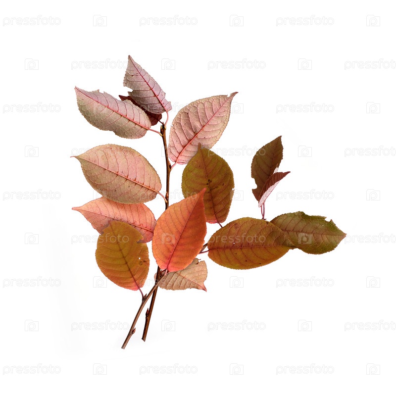Ветка растения с красными листьями, изолированная на белом фоне
