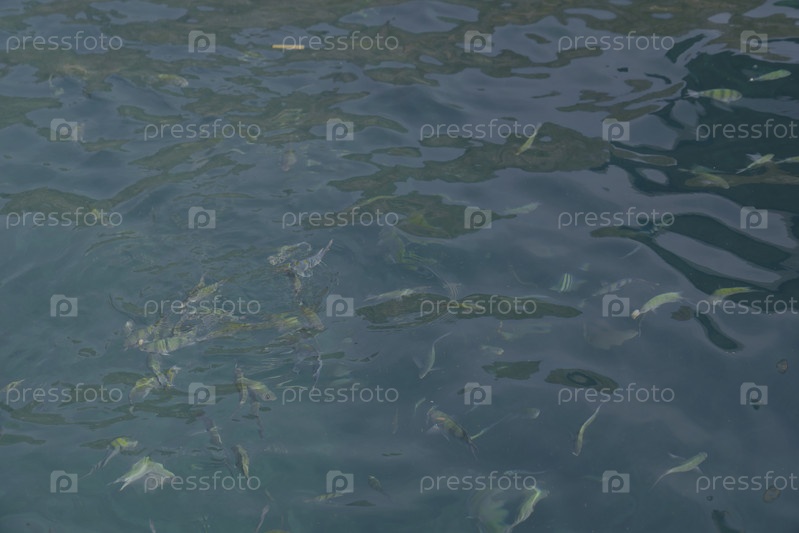Красивая стая рыб грациозно плывет в чистой, спокойной воде океана