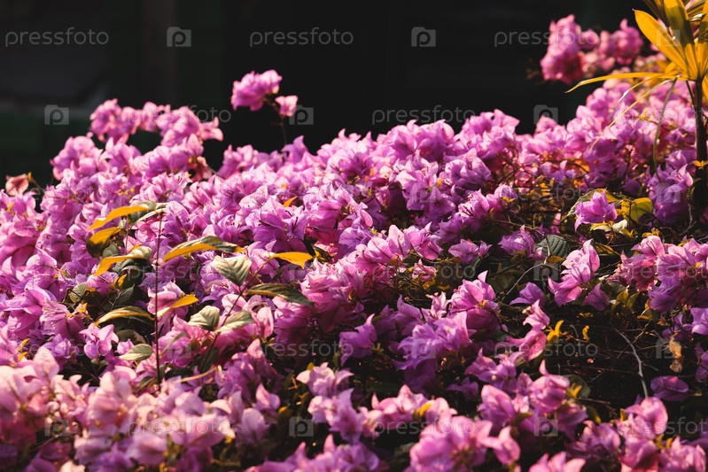 Яркая и красочная бугенвиллия цветет под ярким солнечным светом дня