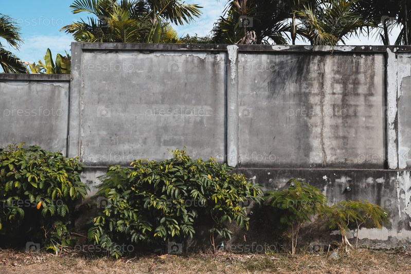 Фактурная бетонная стена окружена пышной зеленью и потрясающей природной красотой