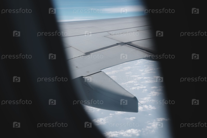 Захватывающий вид на крыло самолета высоко над прекрасными облаками в бесконечном небе