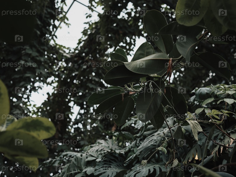 Пышная, яркая зеленая листва прекрасно контрастирует с темным, мрачным небом над головой