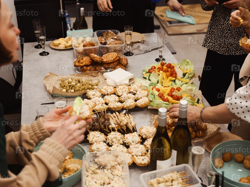 Насладитесь вкусным и праздничным фуршетом с разнообразными закусками и напитками