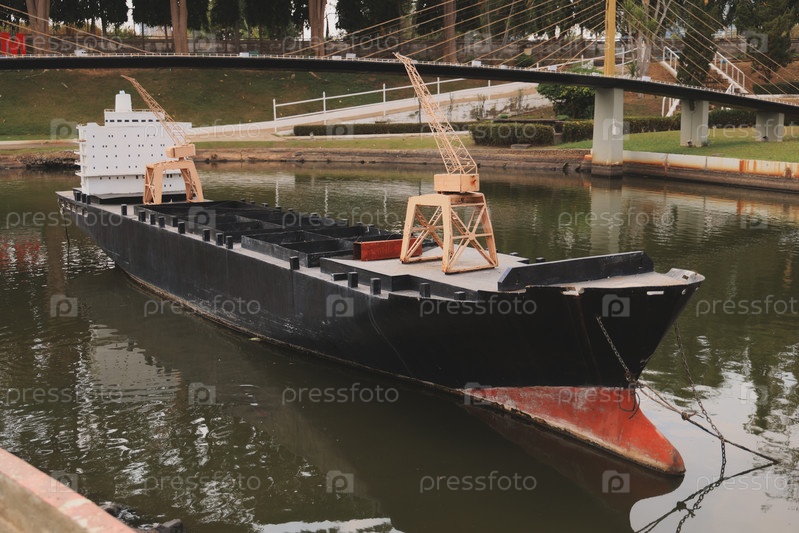 Уникальное грузовое судно грациозно бороздит спокойные воды оживленной гавани