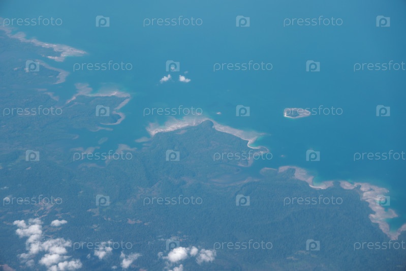 Захватывающий вид с воздуха на прекрасный прибрежный ландшафт и окружающие острова