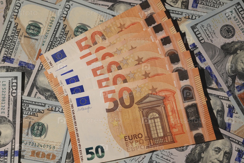 Разнообразие валютных форм. На видном месте представлены как евро, так и доллары США