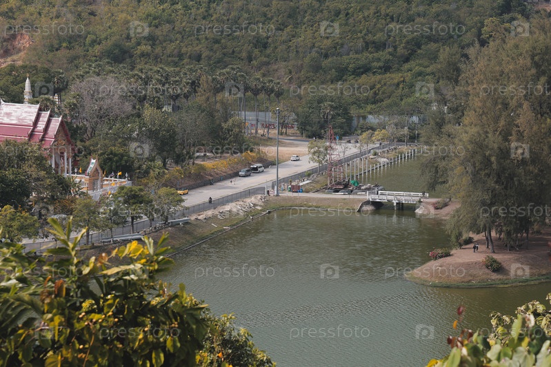 Захватывающий вид на спокойное озеро и живописную дорогу, окруженную пышной зеленью