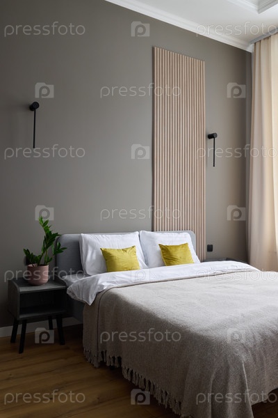 Современная минималистская спальня с натуральными элементами и мягкими текстурами для комфорта и стиля