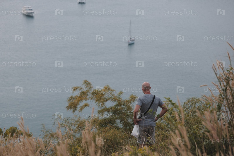 Красивый и умиротворяющий вид на море, где созерцательный человек наслаждается природой