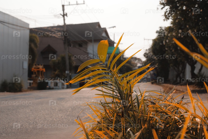 Спокойный вид на улицу с пышной зеленью, залитой мягким, теплым светом, который завораживает