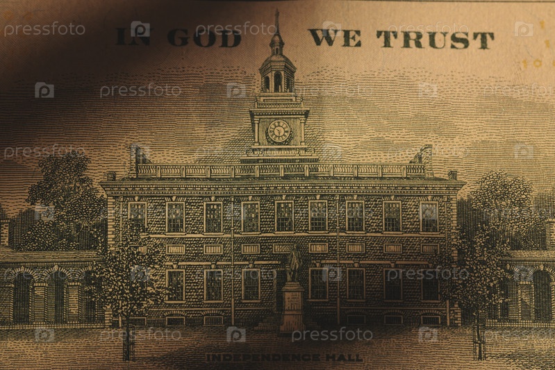 Красивая старинная купюра с надписью «Мы верим в Бога» на дизайне