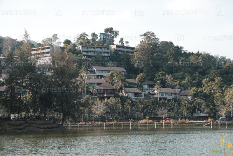 Живописный курорт на берегу озера, расположенный на вершине прекрасного холма, полностью окруженный зеленой природой