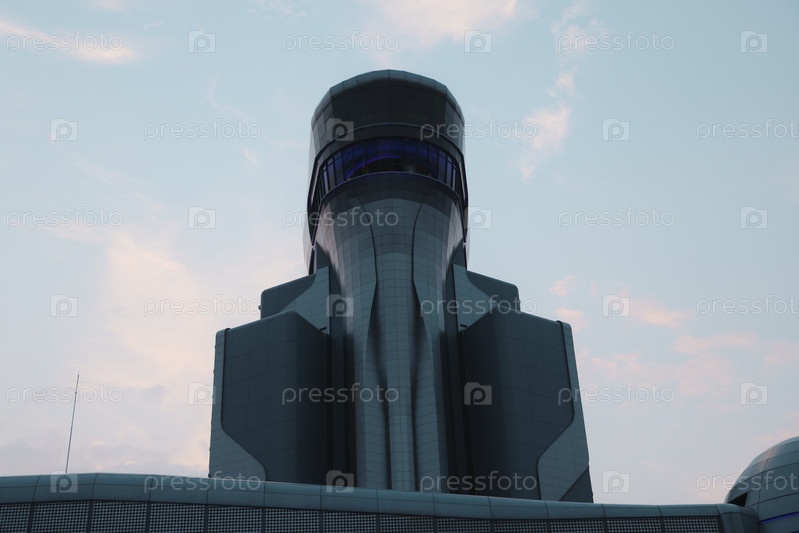 Потрясающая футуристическая башня, величественно возвышающаяся на фоне бескрайнего неба