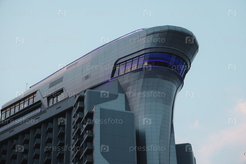Футуристический архитектурный проект современного здания для яркого городского пространства