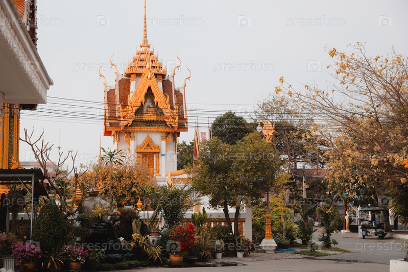 Захватывающий живописный вид на традиционный храм, расположенный среди пышной зеленой растительности