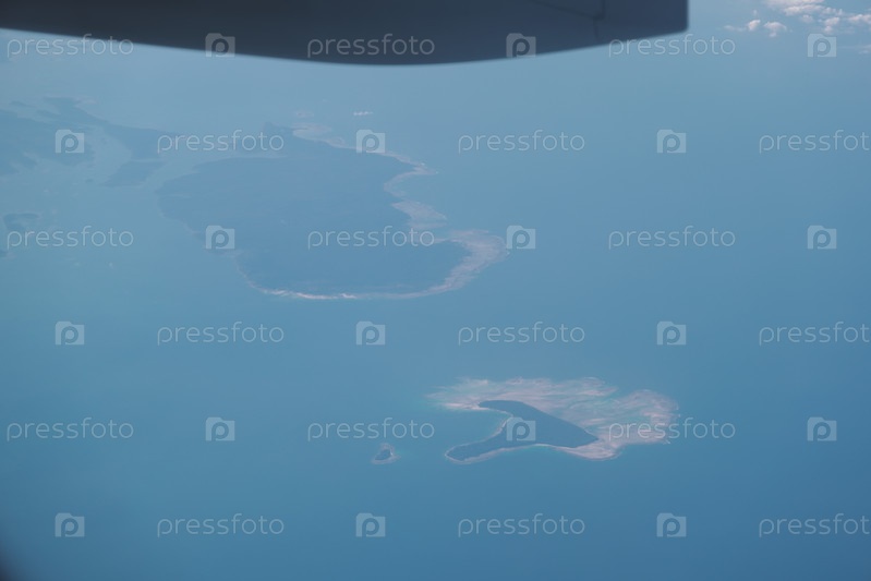 Потрясающий живописный вид с воздуха на прекрасные отдаленные острова, окруженные синим океаном