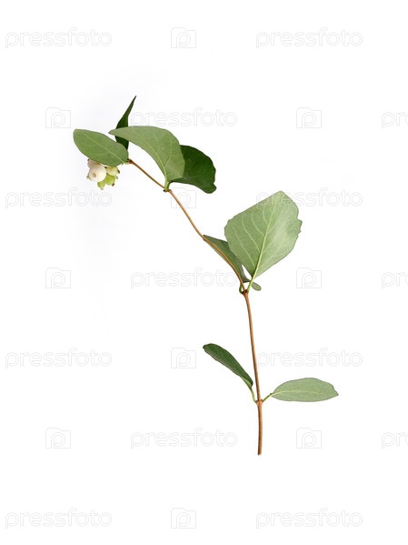 Зеленая ветка снежноягодника с ягодами на изолированном белом фоне