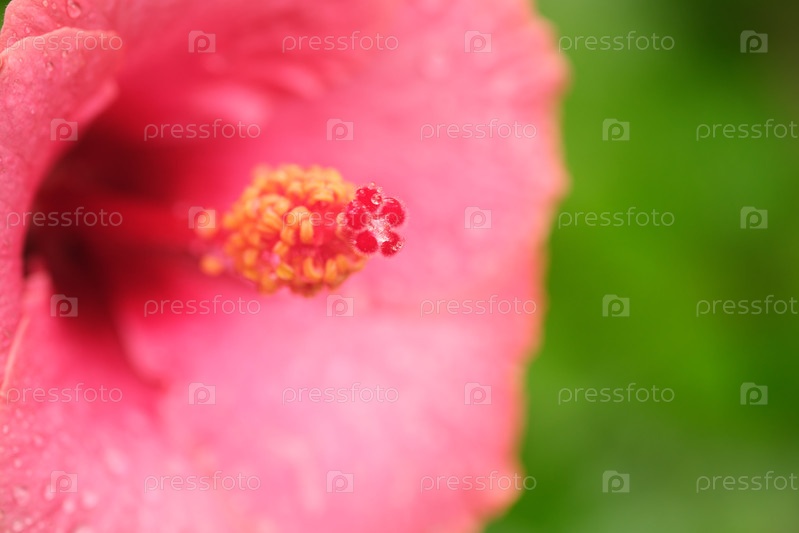 Розовый гибискус на фоне зеленых листьев. Красивый фон для создания плакатов, баннеров и открыток