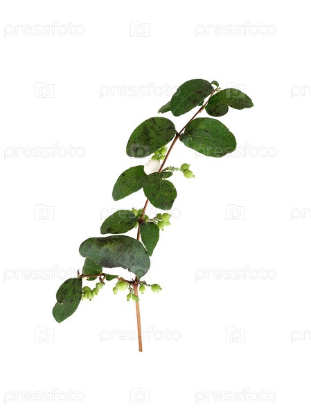 Зеленая ветка снежноягодника с ягодами на изолированном белом фоне