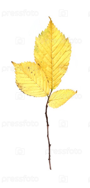 Ветка растения с маленькими желтыми листьями, изолированная на белом фоне