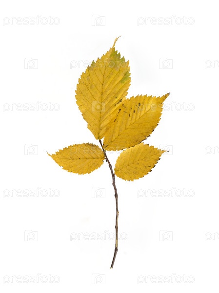 Ветка растения с маленькими желтыми листьями, изолированная на белом фоне