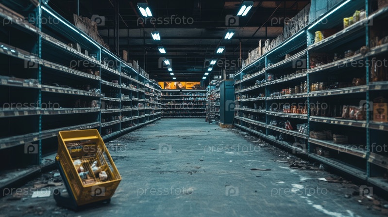 Жуткий заброшенный супермаркет с частично заполненными полками
