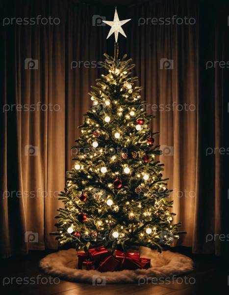Празднично упакованные подарки, окруженные красочными рождественскими шарами под красиво украшенной елью во время радостного новогоднего сезона. Генеративный ИИ
