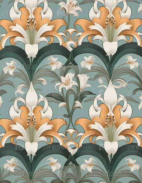 Эти красивые обои демонстрируют яркий цветочный узор с замысловатыми лилиями в мягких тонах. Идеально подходит для добавления нотки элегантности в жилые помещения или спальни. Генеративный ИИ