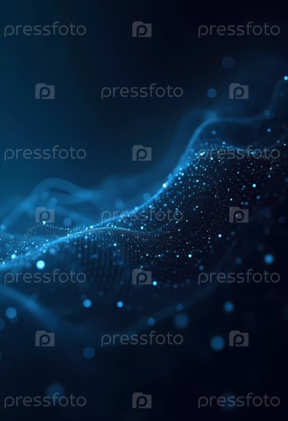 Композиция включает в себя плавные синие линии и светящиеся узлы, которые представляют сложные взаимодействия больших данных в цифровой среде. Футуристический вид подчеркивает технологию и связь. ИИ