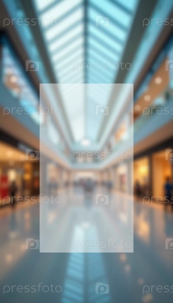 Торговый центр представляет собой просторный, светлый коридор, заполненный покупателями. Витрины магазинов выстроились по обе стороны, создавая живую и привлекательную среду для всех посетителей. Прямоугольное прозрачное пустое пространство. AI