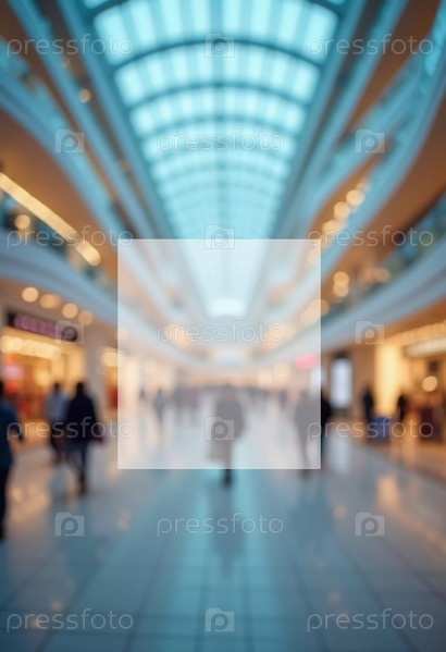 Торговый центр представляет собой просторный, светлый коридор, заполненный покупателями. Витрины магазинов выстроились по обе стороны, создавая живую и привлекательную среду для всех посетителей. Прямоугольное прозрачное пустое пространство. AI