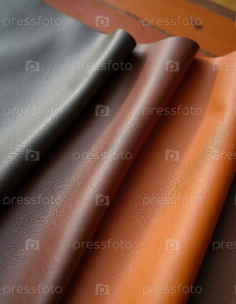 Коллекция образцов настоящей свиной кожи демонстрирует разнообразие цветов, включая оттенки оранжевого, золотого, коричневого и черного. Каждый экземпляр демонстрирует уникальные текстуры и отделки. Генеративный ИИ