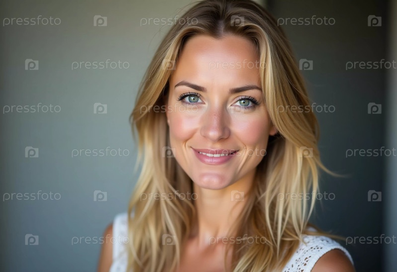 Жизнерадостная светловолосая шведка с пленительными глазами мягко улыбается в прекрасно освещенной комнате, наполненной естественным светом, олицетворяя тепло и позитив