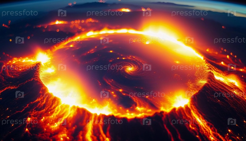 Завораживающее зрелище вспышек огня создает потрясающий контраст на темном небесном фоне. Генеративный ИИ