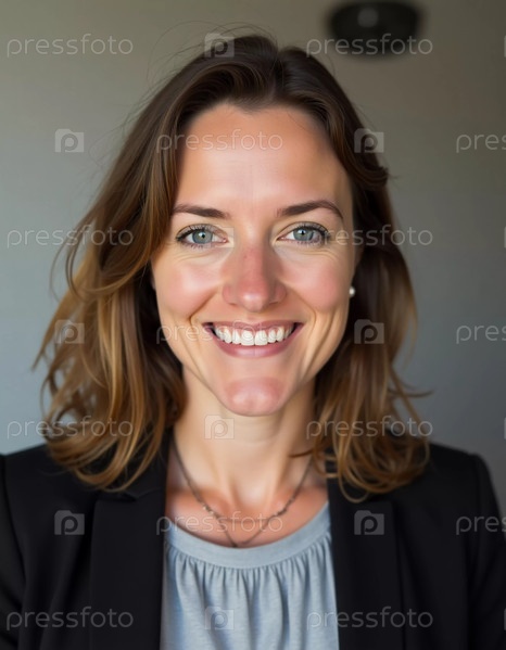 Веселая шведка стоит в мягко освещенном помещении, ее глаза сверкают радостью. Она демонстрирует уверенную улыбку, отражающую теплоту и доступность