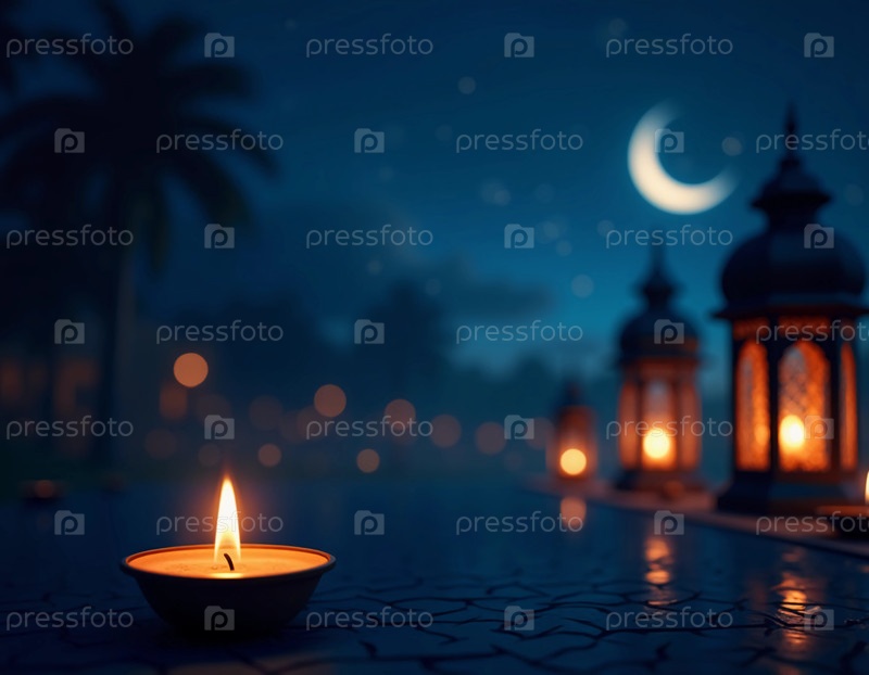 Мягкий свет красиво оформленного арабского фонаря и горящей свечи создает теплую, уютную атмосферу, идеально подходящую для ночных празднеств Рамадана среди мусульман. Генеративный ИИ