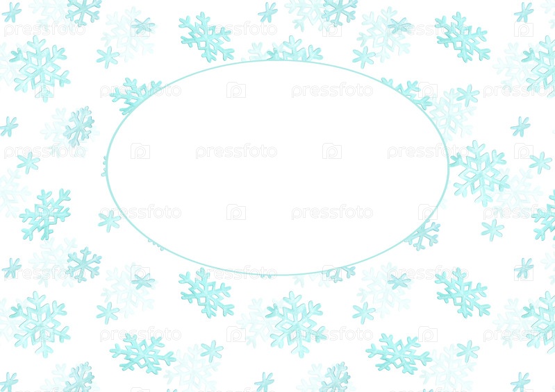 Горизонтальный фон из снежинок с белым овалом для текста. Простой узор с нарисованными вручную падающими акварельными снежинками. Зимний шаблон для обложек, открыток, постеров и т. д