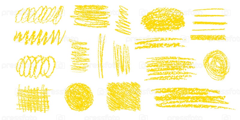 Творческая экспозиция включает в себя различные узоры штриховки углем рядом с яркими желтыми текстурами на белом холсте. Контрастные цвета подчеркивают художественную выразительность и технику в рисовании