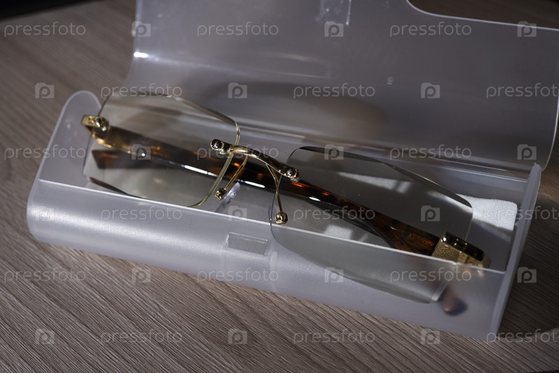 Корректирующие очки с футляром на черном фоне