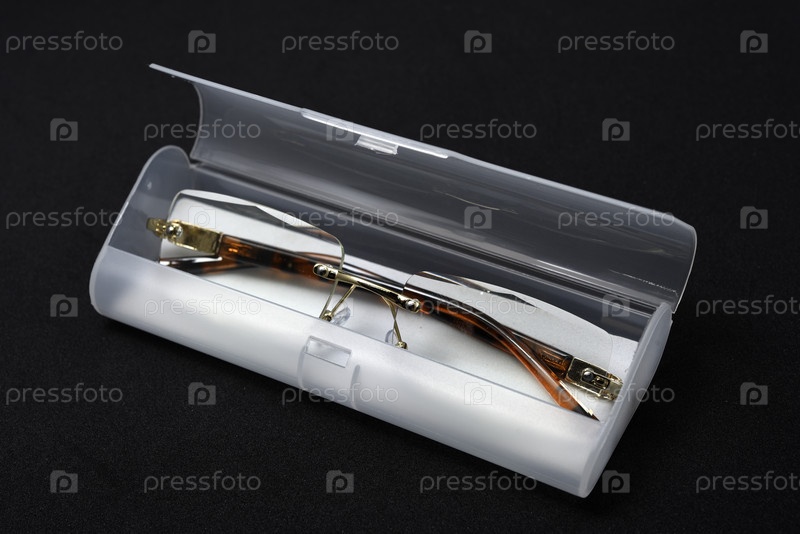 Корректирующие очки с футляром на черном фоне