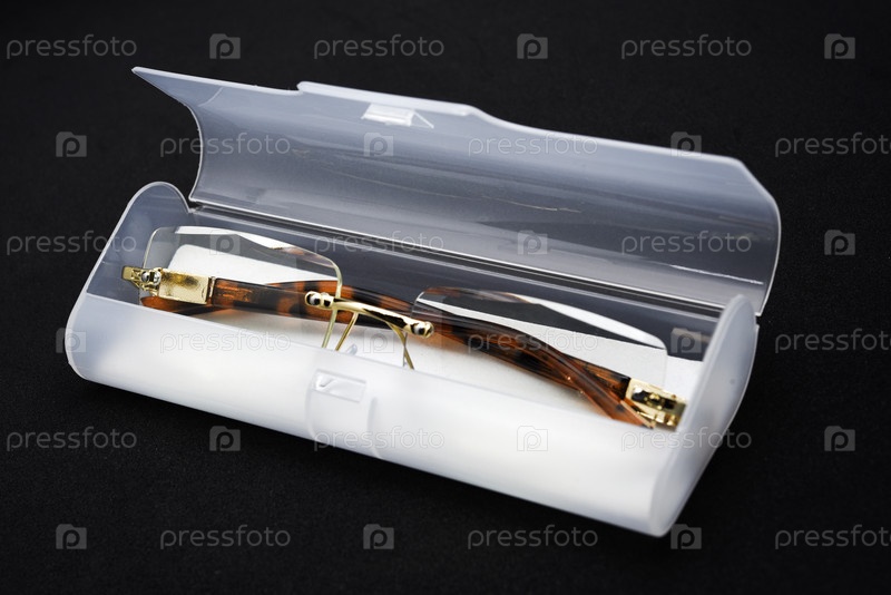 Корректирующие очки с футляром на черном фоне