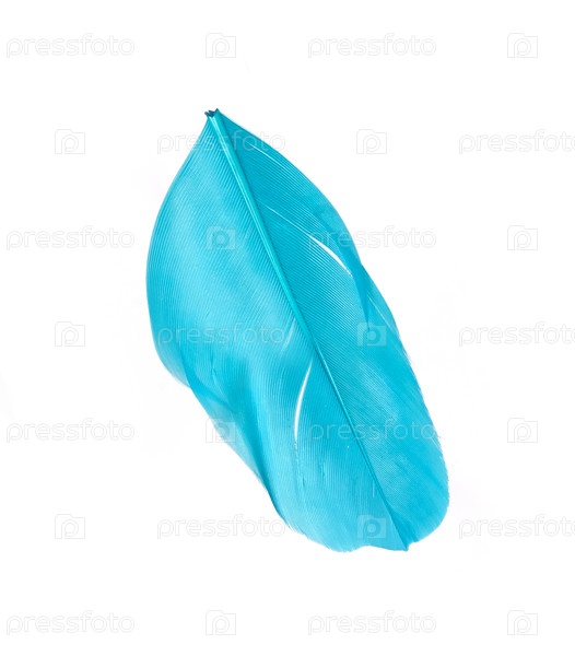 Ярко-синее натуральное перо птицы, изолировано на белом фоне