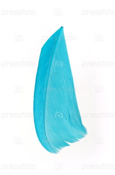 Ярко-синее натуральное перо птицы, изолировано на белом фоне