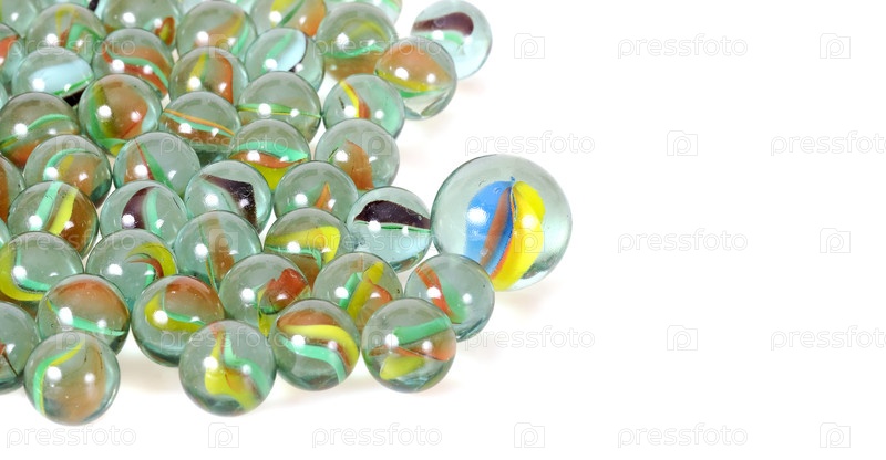 Стеклянные прозрачные шарики, изолированные на белом фоне