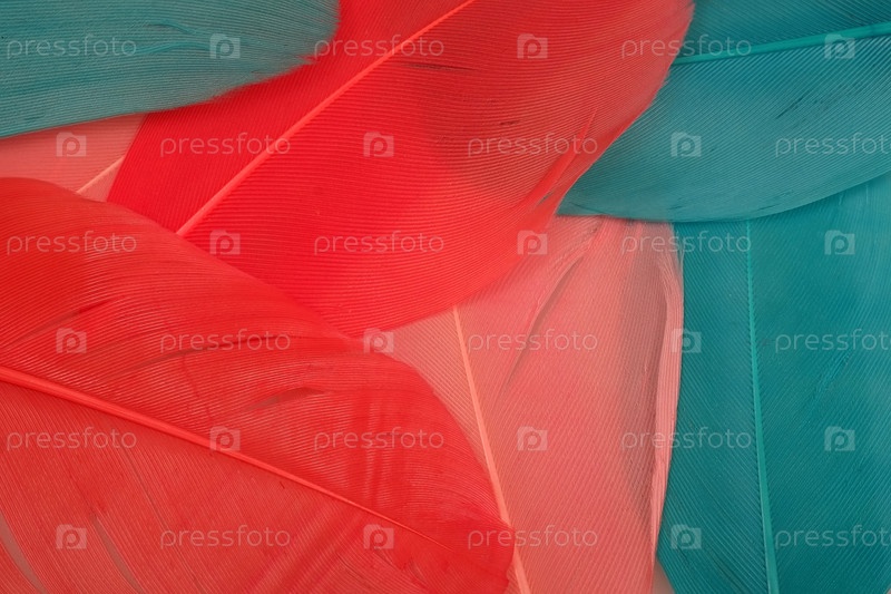Яркий разноцветный фон (макет) из перьев птиц
