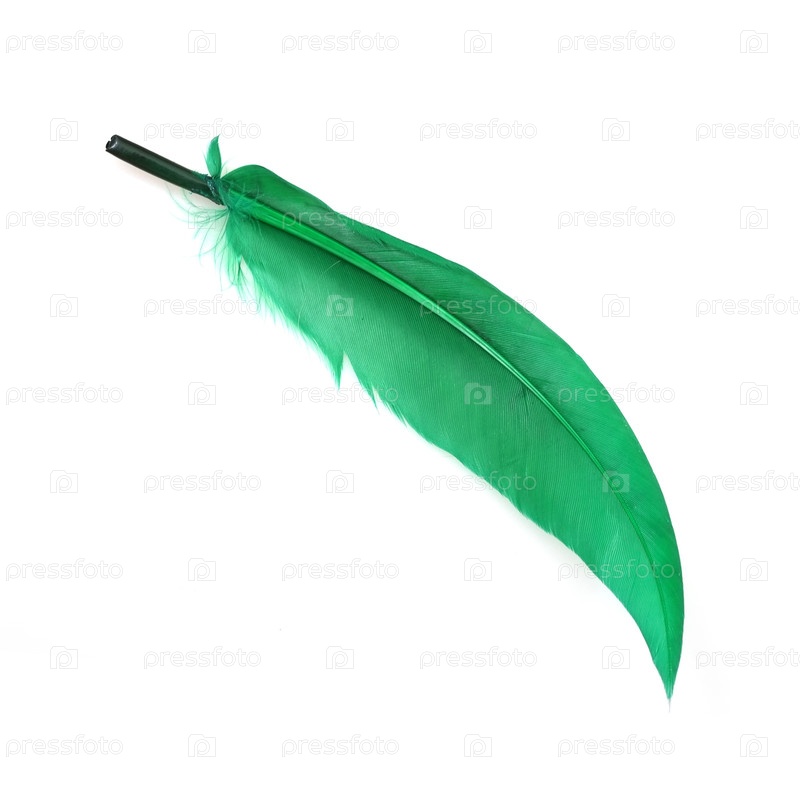 Яркое разноцветное птичье перо, изолированное на белом фоне