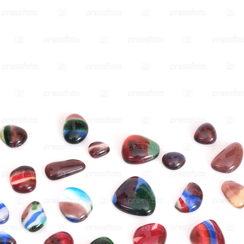 Стеклянные яркие цветные элементы, изолированные на белом фоне, для создания плакатов / баннеров / открыток